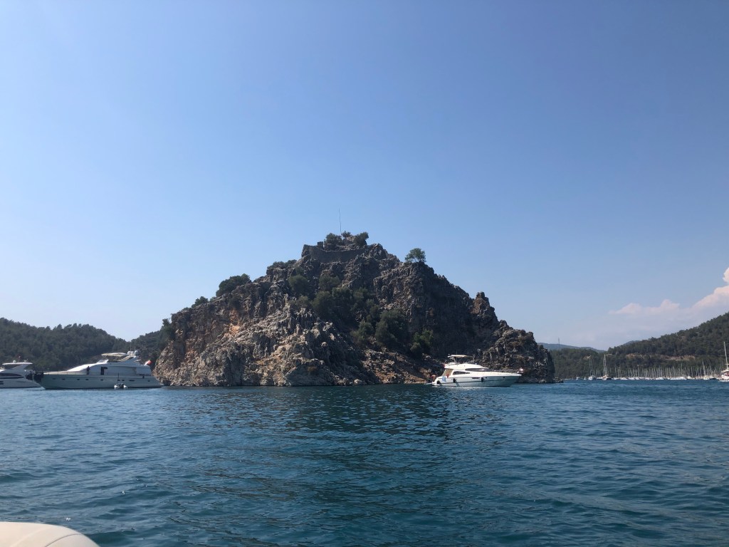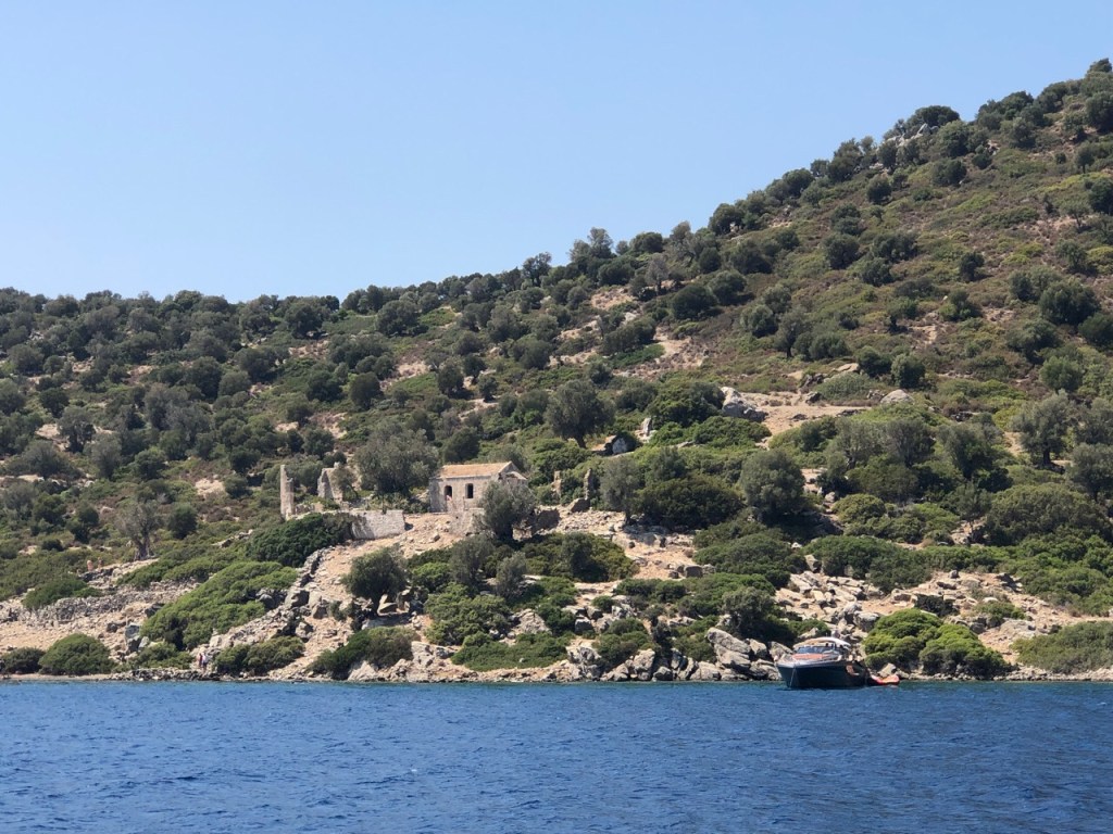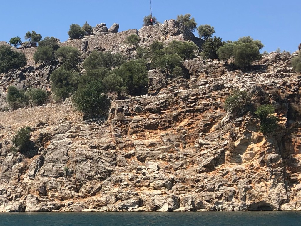 We anchored in a beautiful spot not far from the picturesque castle ruins on a rocky islet, believed to have been part of the ancient city of Bybassos.
