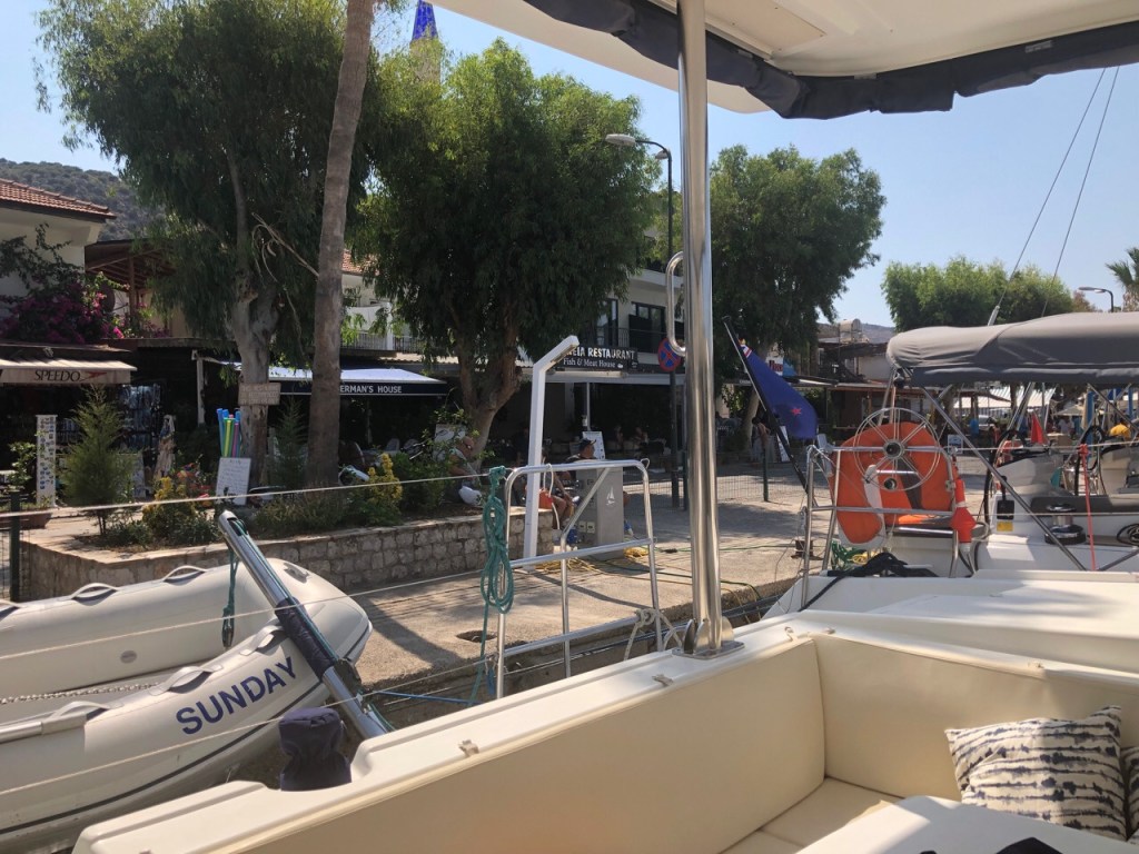 There’s a lovely anchorage in Bozburun so it beats us why people prefer to Med moor (where the anchor is dropped and then the boat is tied to land). We are grateful for this however, as it leaves all the more room for us!