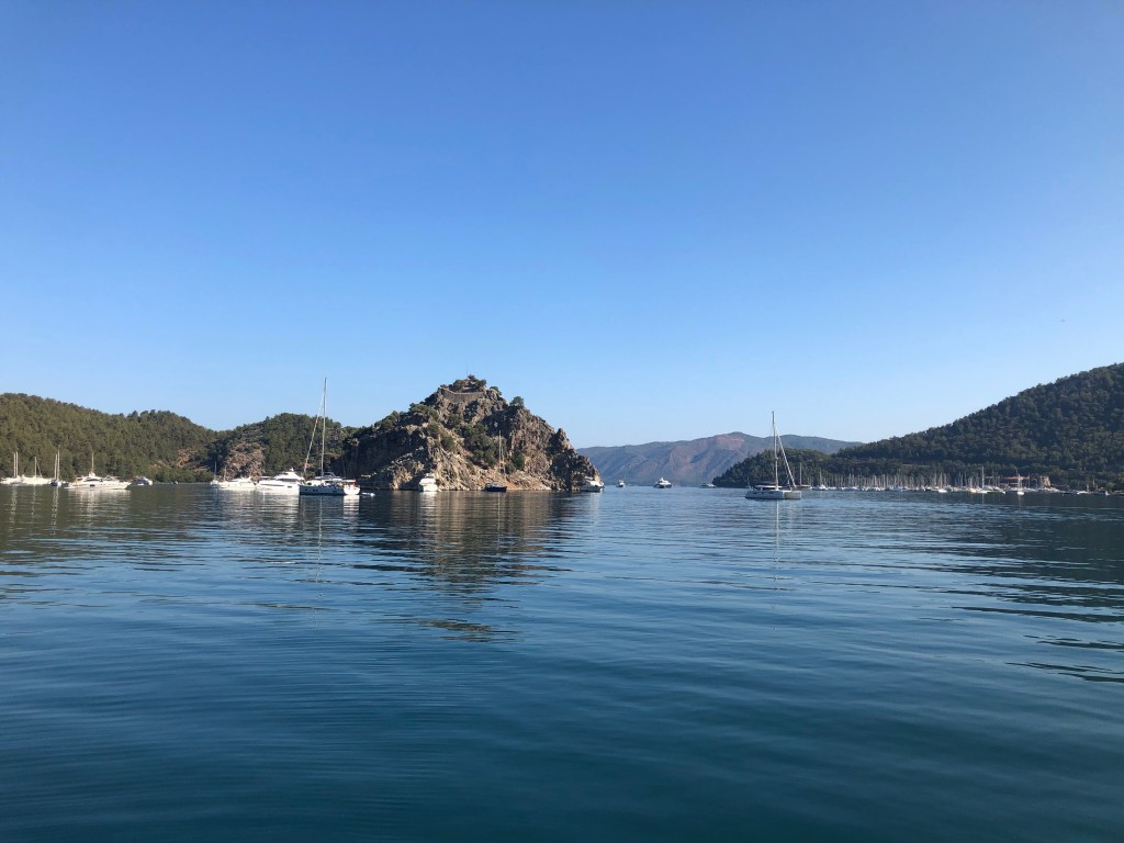 Orhaniye is a bay situated at the connection between the two long fingers of land – the Bozburun and Datça peninsulas – that stretch out towards the Greek islands of Simi and Rhodes. It is therefore extremely sheltered and a beautiful spot to anchor for a few days.