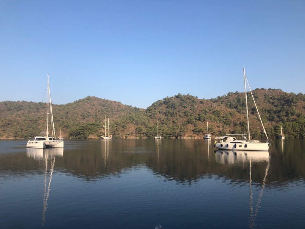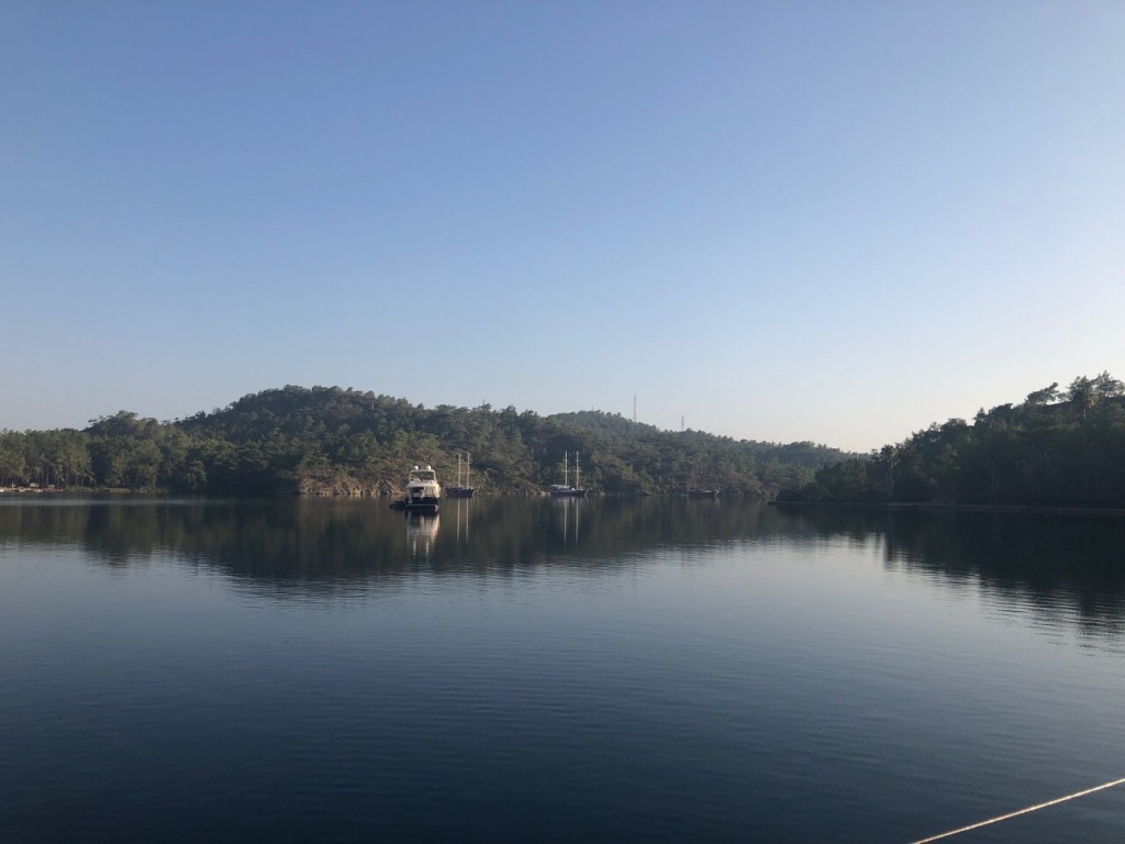 After a couple of nights in Bozburun we pulled up the anchor and motor sailed to Bençik – a beautiful, peaceful, inlet on the Datça Peninsula that Sue and John on Catabella had found.