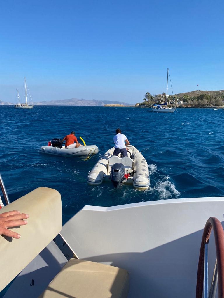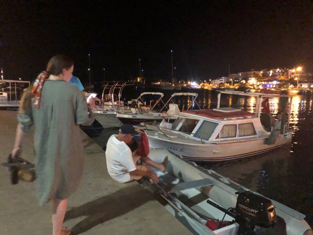 We thought that maybe someone had been knocked off the boat by the flapping sail but it turned out to be an older Turkish lady swimmer who found herself unable to get back into the beach and was slowly getting swept out to sea.
