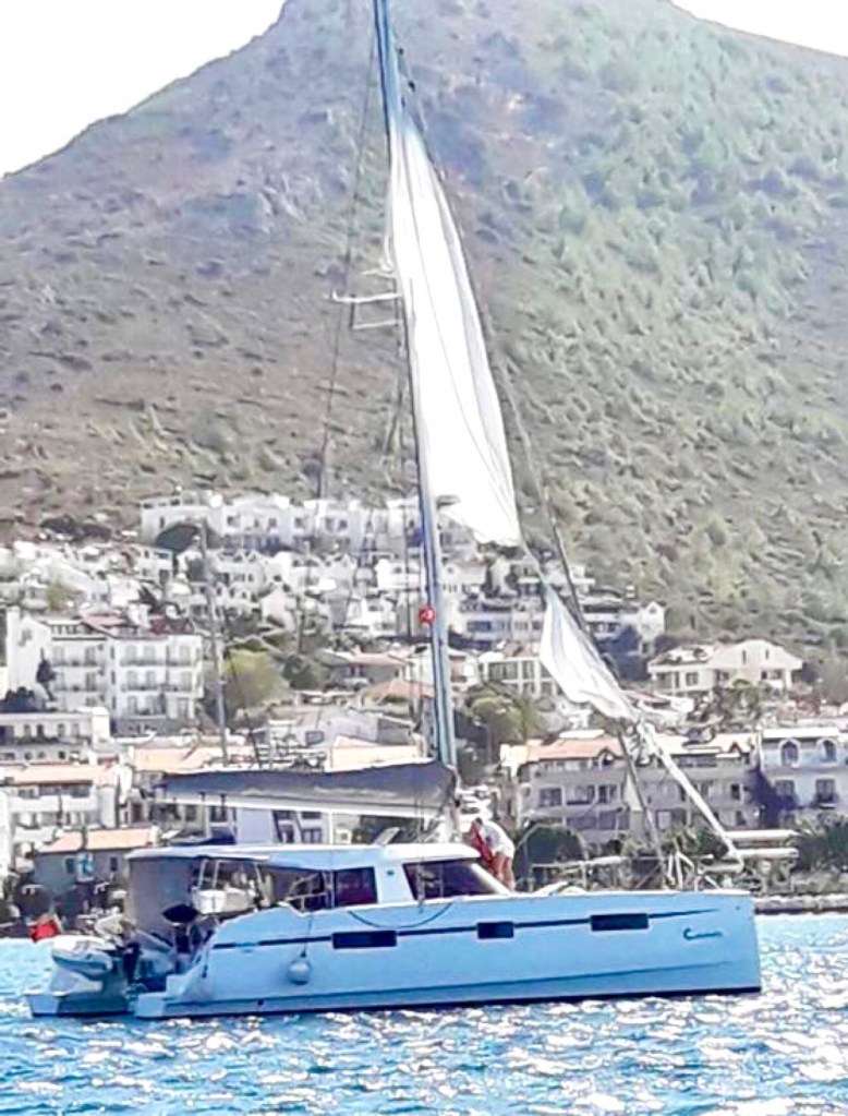 Fortunately two boats anchored near to Catabella, closer to land than us, had been able to reach them and were already assisting with getting the sail under control.