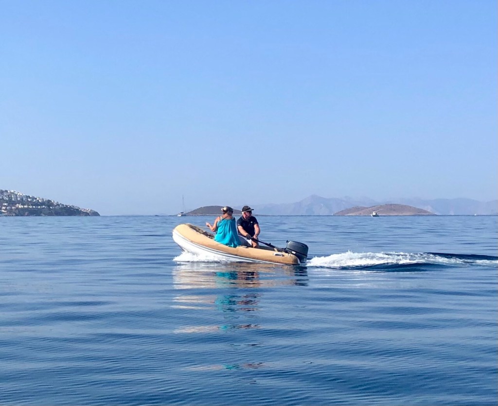 We had been anchored in Yalikavak for a couple of days when a beautiful Amel ketch called S/V Dusk came into the anchorage. It turned out that this lovely boat belonged to Tracey and Steve Bell from South Africa. After a quick radio conversation they came over to our boat S/V Sunday in their dinghy.