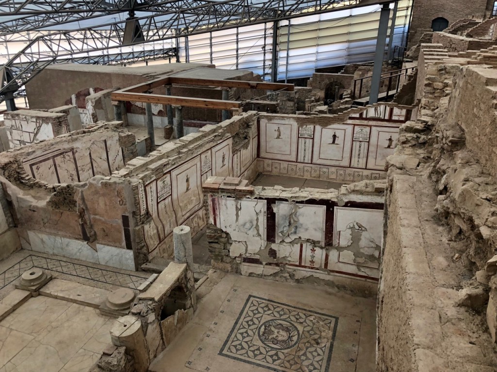 Covered by an amazing roof structure to protect the precious mosaics, wall paintings and other artefacts, the area is crisscrossed with glass and iron walkways leading through various levels, so you can view different aspects of the once magnificent homes of the wealthy citizens of Ephesus.