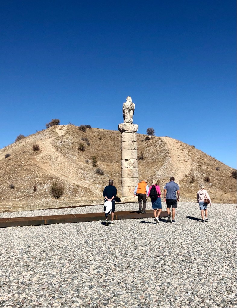 After stopping to view the dam (where we enjoyed a glass of freshly squeezed pomegranate juice!) we drove on to the Karakuş Tümülüs, the burial place of the mother and sister of Mithridates ll.