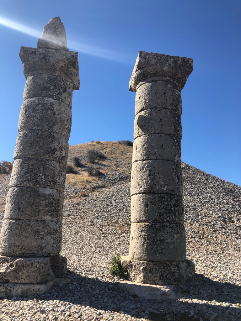 This fine funerary monument was built between 30 and 20 BCE and the site commands the most incredible views. The tumulus is surrounded by three columns – each about 9 metres (30 ft) high. The columns are topped with reliefs and statues of a bull, lion and eagle.