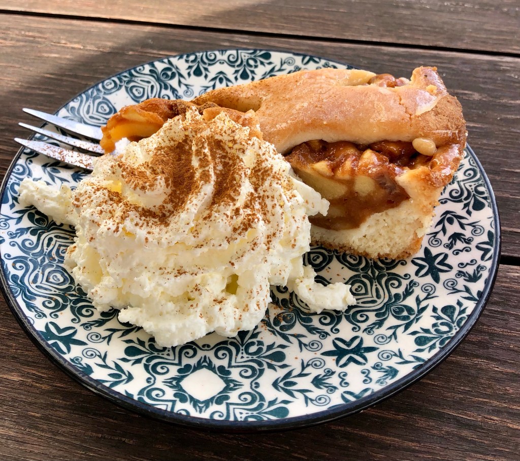 The other part of the ritual is to have afternoon tea in the garden centre cafe where they serve (among many other lovely things) Dutch apple pie with lashings of slagroom (whipped cream)!