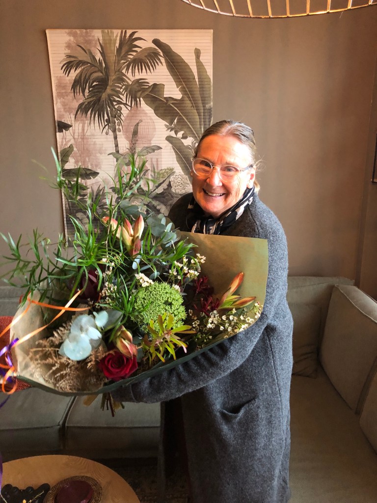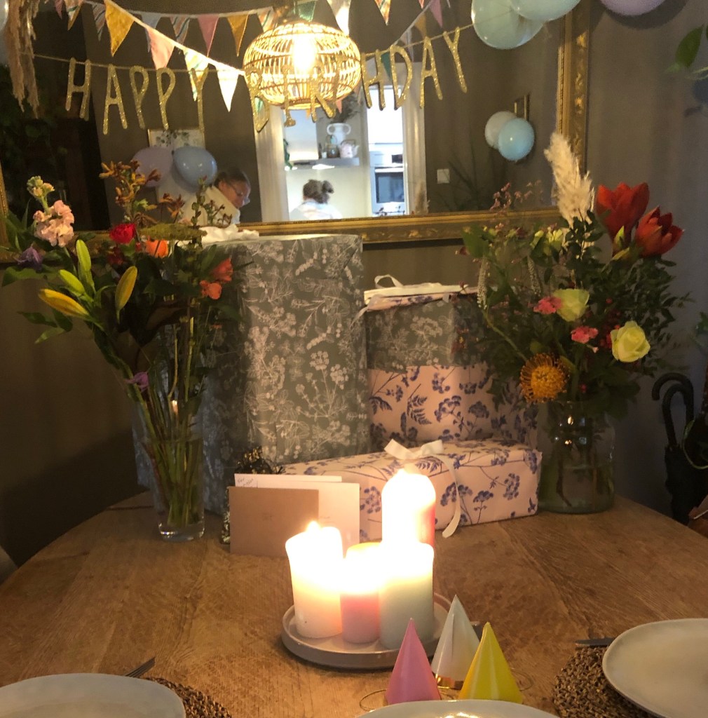 We were staying with our daughter Hannah and son-in-law Pieter in their home in Pijnacker in the Netherlands and we came downstairs on the morning of my birthday to find the living room beautifully decorated with bunting, balloons, candles and fresh flowers.