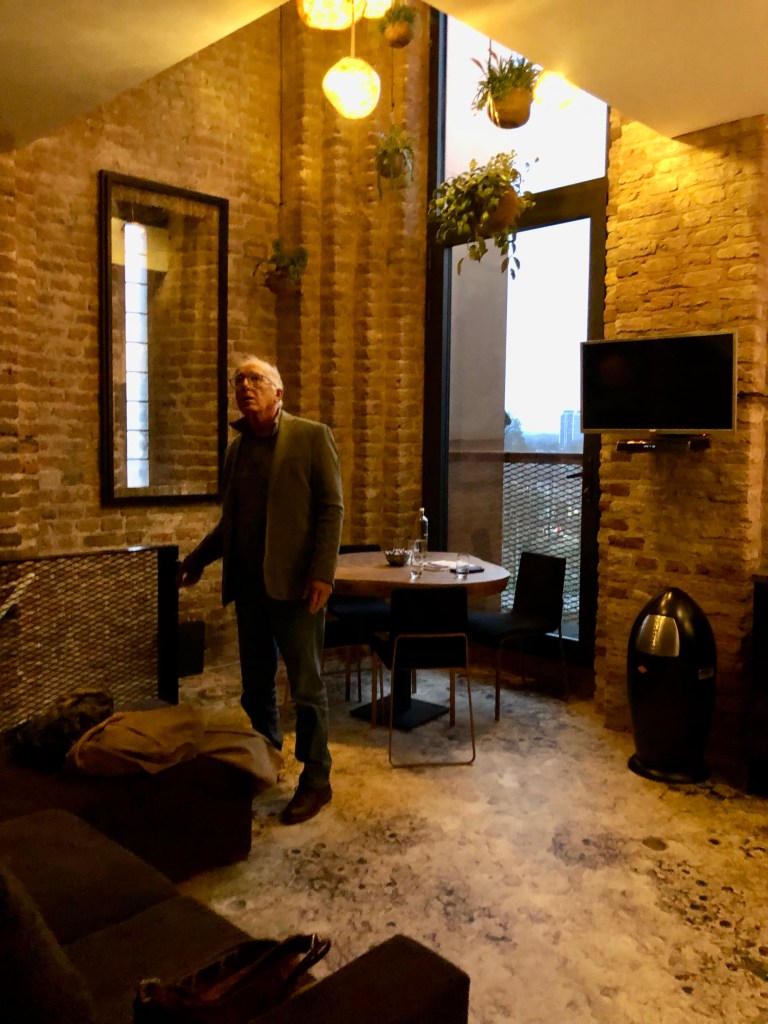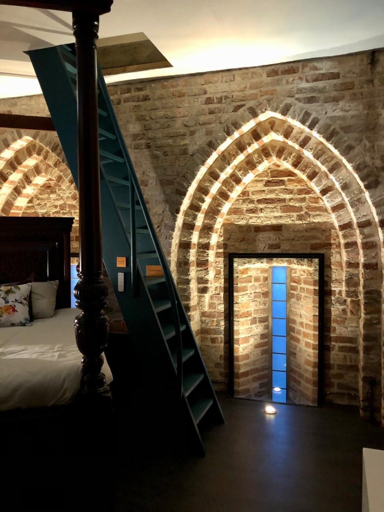 We entered the building through the ancient Church door and just inside the entrance sat the original baptismal font. A few steps in and we were in an ultra modern four person lift which took us to our lodgings.
