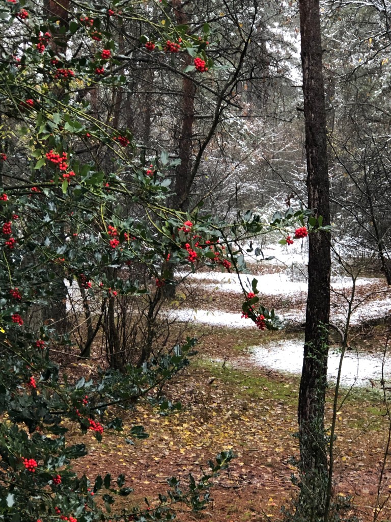 Everything looked magical with the frosting of snow glittering and the last of the autumn leaves clinging to the trees.