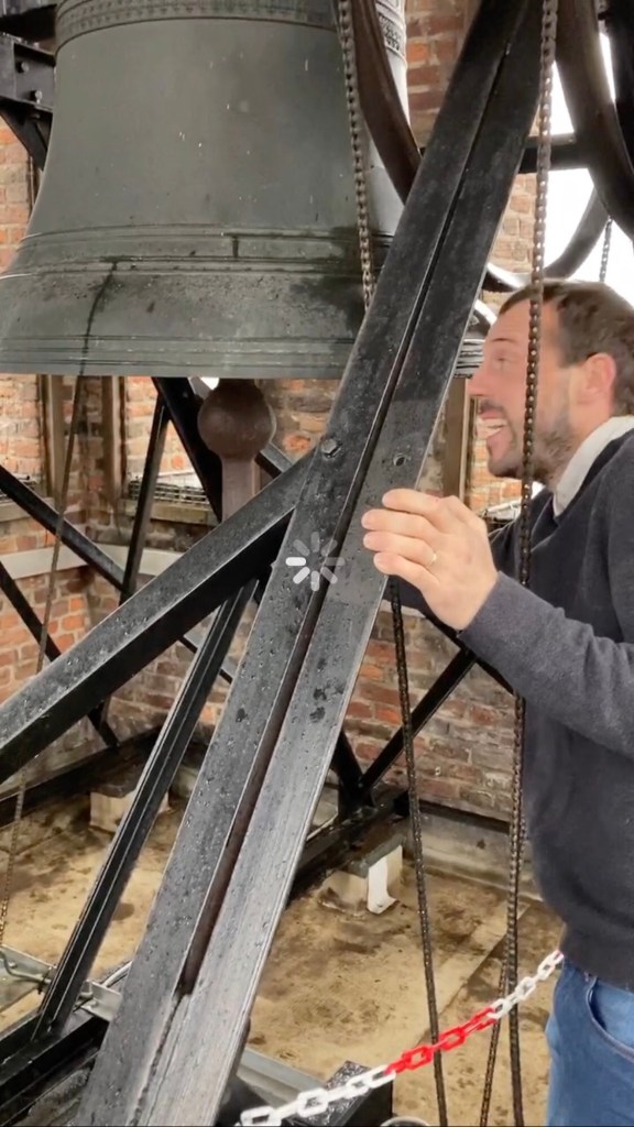 Lifting it up we entered a magical sitting area and to our surprise – right next to it – were two gigantic bells! We were in the belfry!
