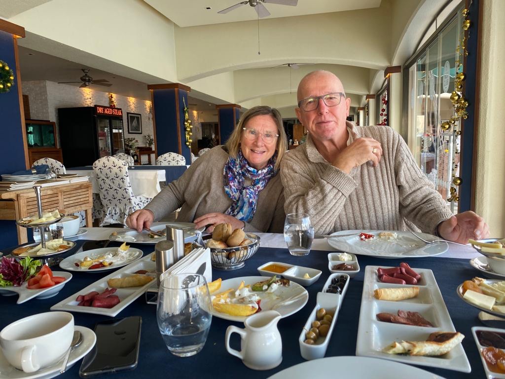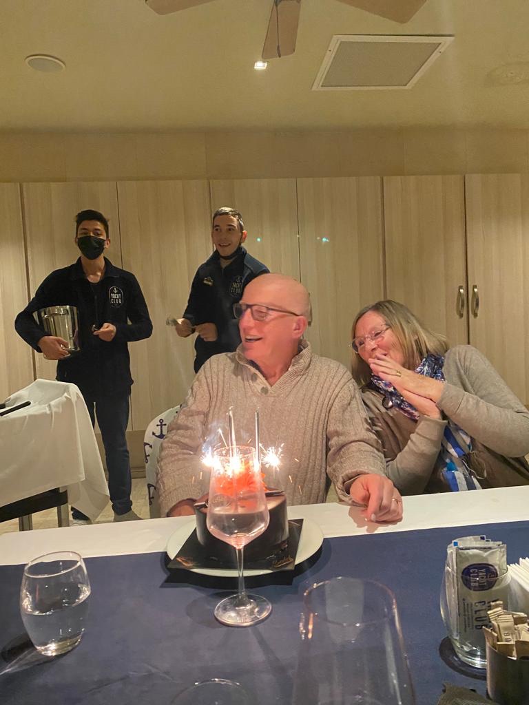 On Jonathan‘s special day we started the celebrations with a sumptuous breakfast at the Yacht Club restaurant with our sailing buddies and next door neighbours, Sue and John.