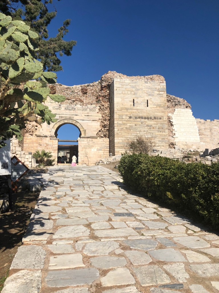 We walked further up the hill to the impressive fortress which was originally built to protect the basilica after Arab invasions in the 7th Century but was rebuilt and expanded in the Selcuk and Ottoman eras.