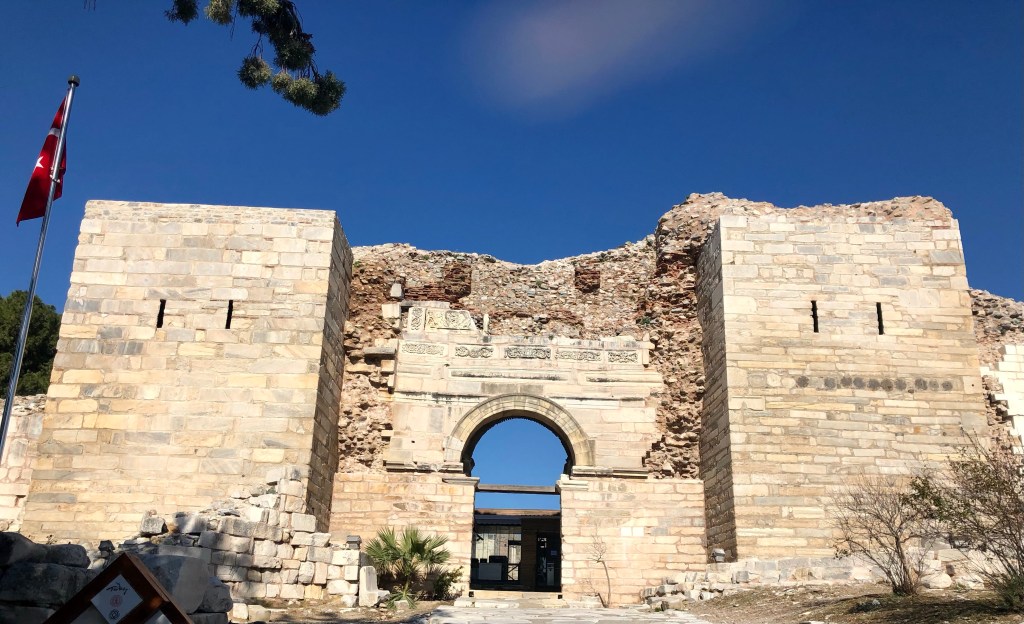The main entrance gate to the basilica was called the “Gate of Persecution” by European travellers in the 1800s who incorrectly assumed that stone reliefs on the gate depicted the persecution of St Paul during his time in Ephesus.