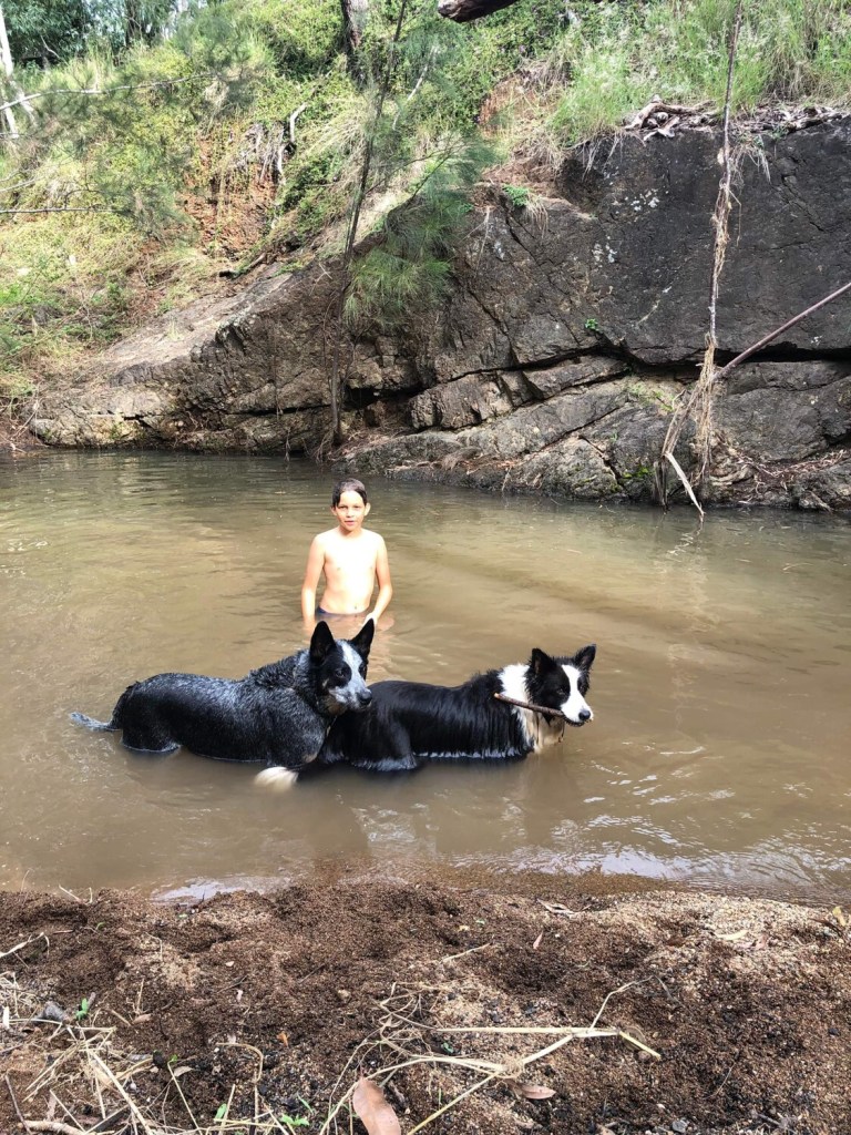 There was much splashing and swimming on the part of the children and the dogs but the highlight of the afternoon for the bigger kids was to tumble into the back of Ben’s 4WD to drive back to the house.