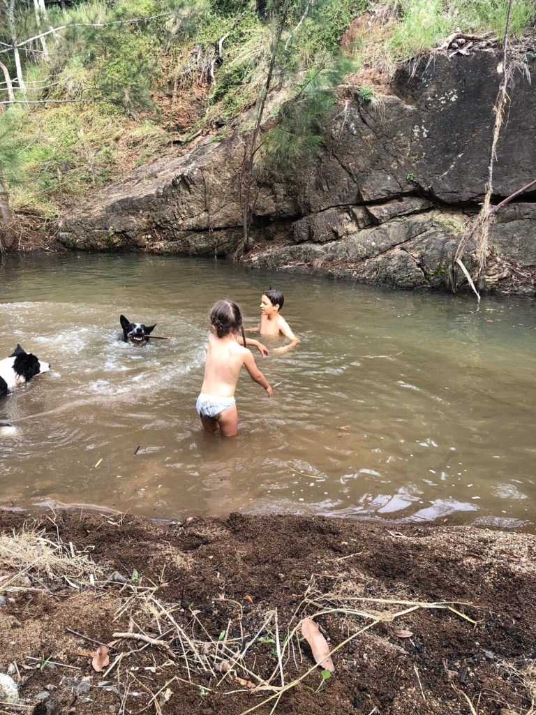 Despite there being very little furniture in the new house, as Ben and Sarah were yet to move in properly, we had a lovely shared meal there and later went down to the nearest creek on their property, just a short walk/drive from the house.