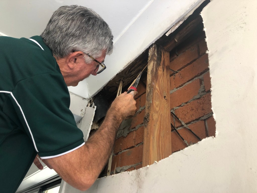 So we had to organise termite treatment and repairs to the affected areas. There was also a big mess left in the garage wall and ceiling (and we later found, the floor upstairs in one of the bedrooms) created by an unreported leaky shower.