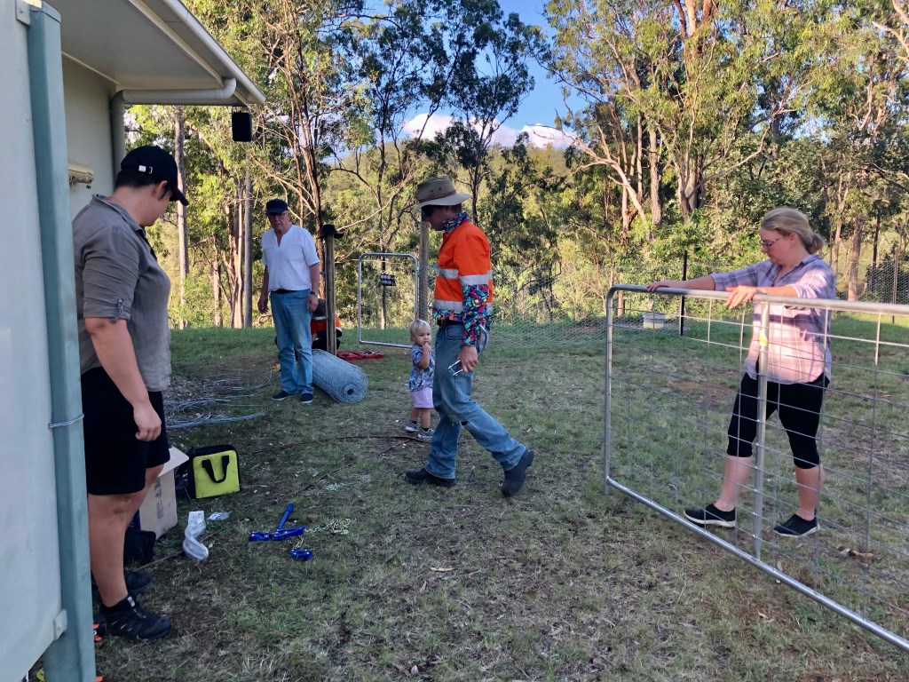 Although we didn’t spend a night up there, we visited most days and tried to help them with the various jobs they were tackling such as cleaning up the garden around the house, filling holes in the walls left from picture hooks, then touching up the paint and organising food for Ben and Sarah and their friends who amongst other things, helped them with fencing for the duck/dog run.