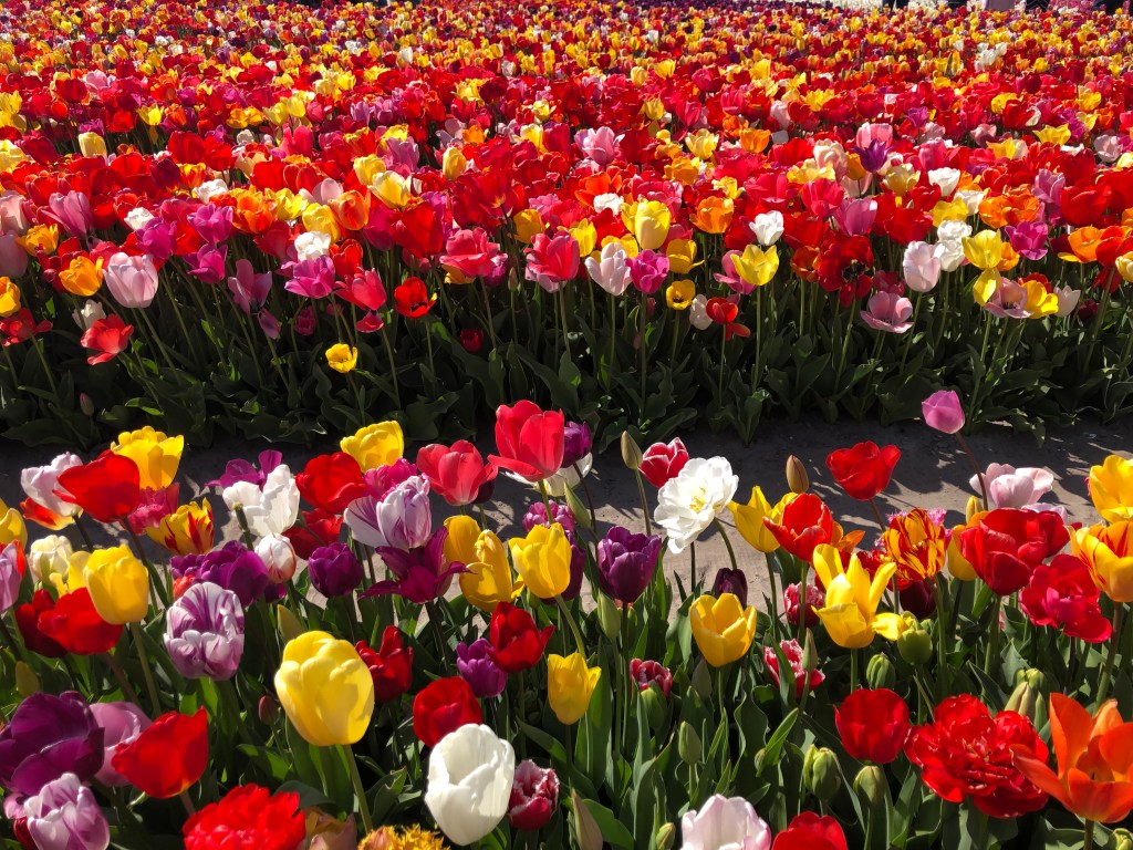 As well as having 175 varieties of tulips (a total of 400,000 individual blooms) on display, there were various objects (a swing, tractor, a motor scooter etc) in the special “tourist” fields to help create the perfect Instagram shot.