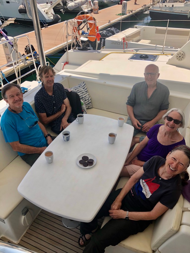 We had met up with Phil in Gocek in Turkey last year but hadn’t seen Lesley since the rally ended. Covid travel restrictions had prevented her from joining Phil as planned – he had left Australia a few weeks earlier than her to do some prep work on the boat. They were separated for many long months but happily they were now both back on board and ready for a new adventure.