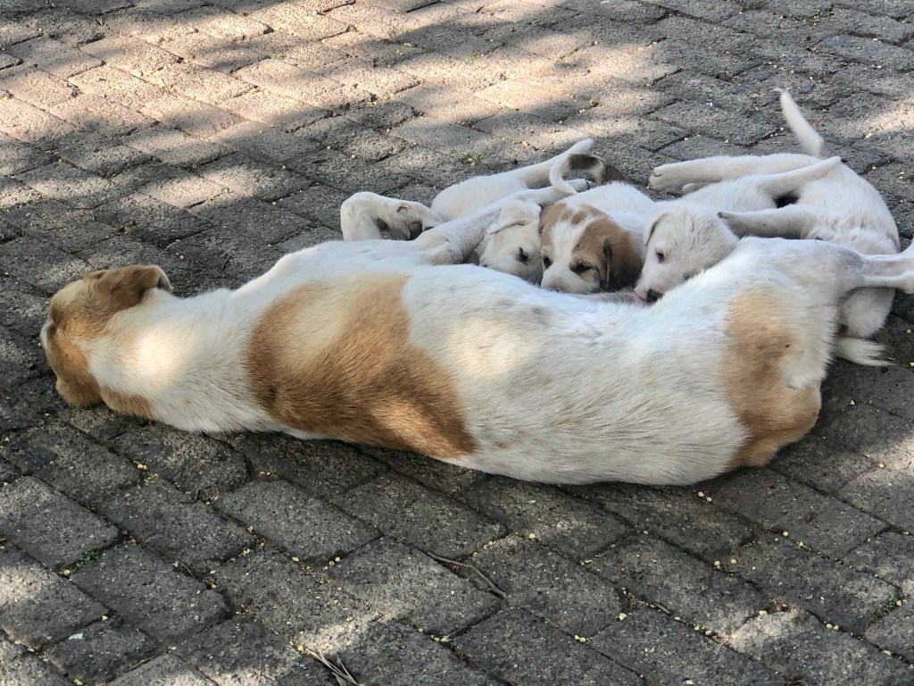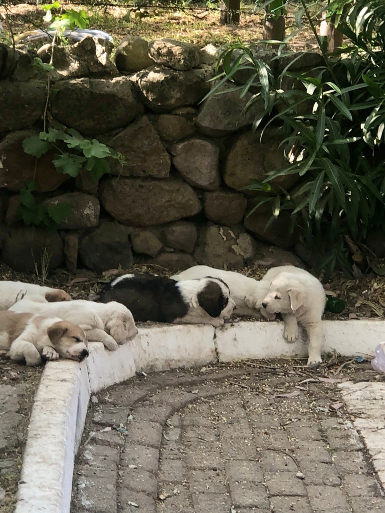 One day we came across a sleepy dog enjoying a snooze in the shade and then spied seven roly poly puppies and realised why she seeemed so exhausted!