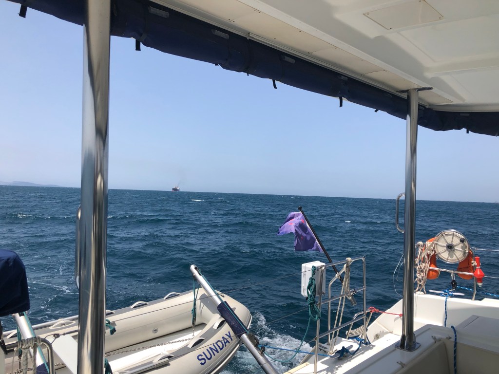 We had one scary moment when a large carrier ship and Sunday were on collision course. The ship was miles away but those things travel fast! As it got nearer we changed course slightly – and so did the boat. It ended up overtaking us ever so sedately!
