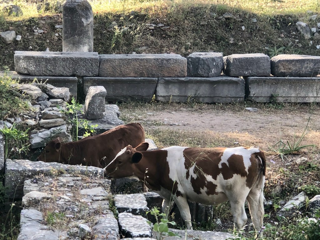 As we scrambled down into the excavated area we were very surprised to see three cows grazing amongst the ruins.