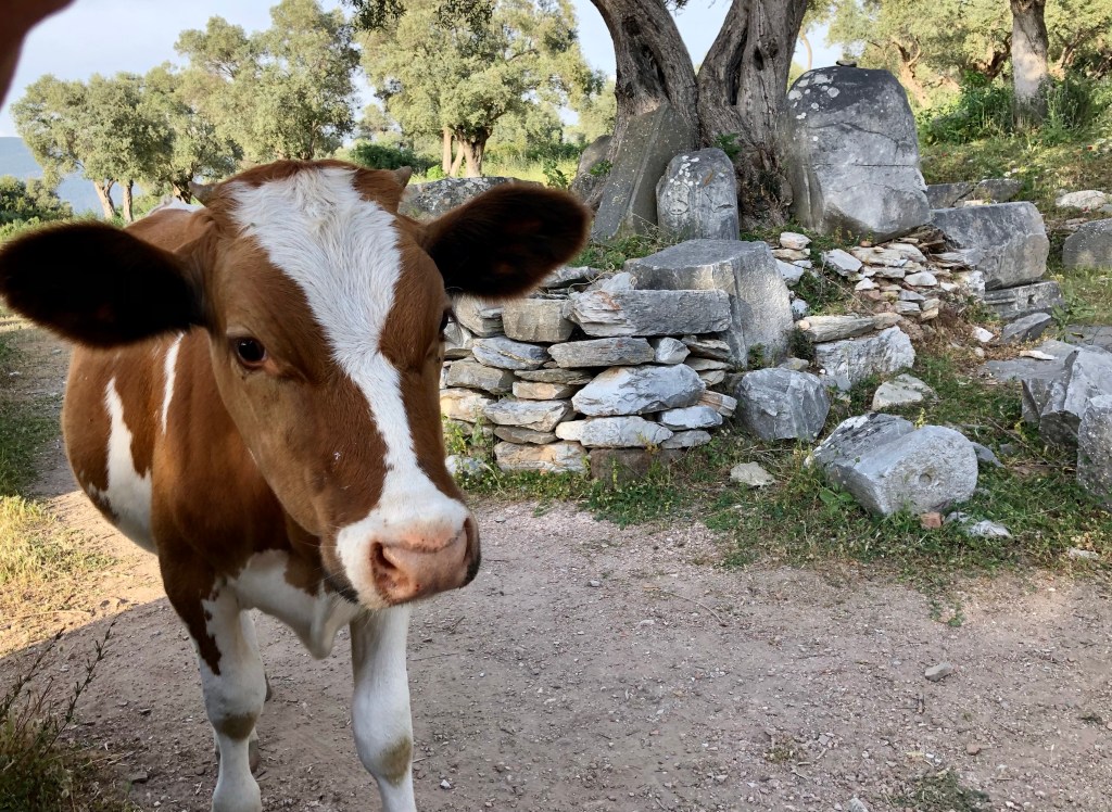 Later, when we were enjoying a wonderful meal of fresh sea bass in the local hotel, we watched as the local cows walked slowly home from their feeding grounds amongst the historic ruins on the opposite shore.