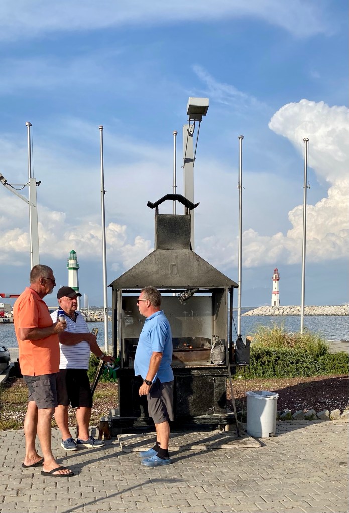 We anchored very comfortably outside the marina and in the late afternoon took our dinghy to join the others for the BBQ.