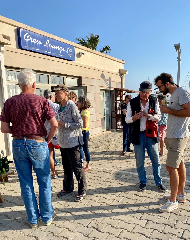 Adrian, from “Aussie Anthem” who is very fond of the saying “Aren’t we all lucky bastards” and “Here’s to all the members of the Lucky Bastards Club” (there’s a story to this that is his to tell) was presented with a Lucky Bastards Club t-shirt by John and Sue from S/V Catabella.