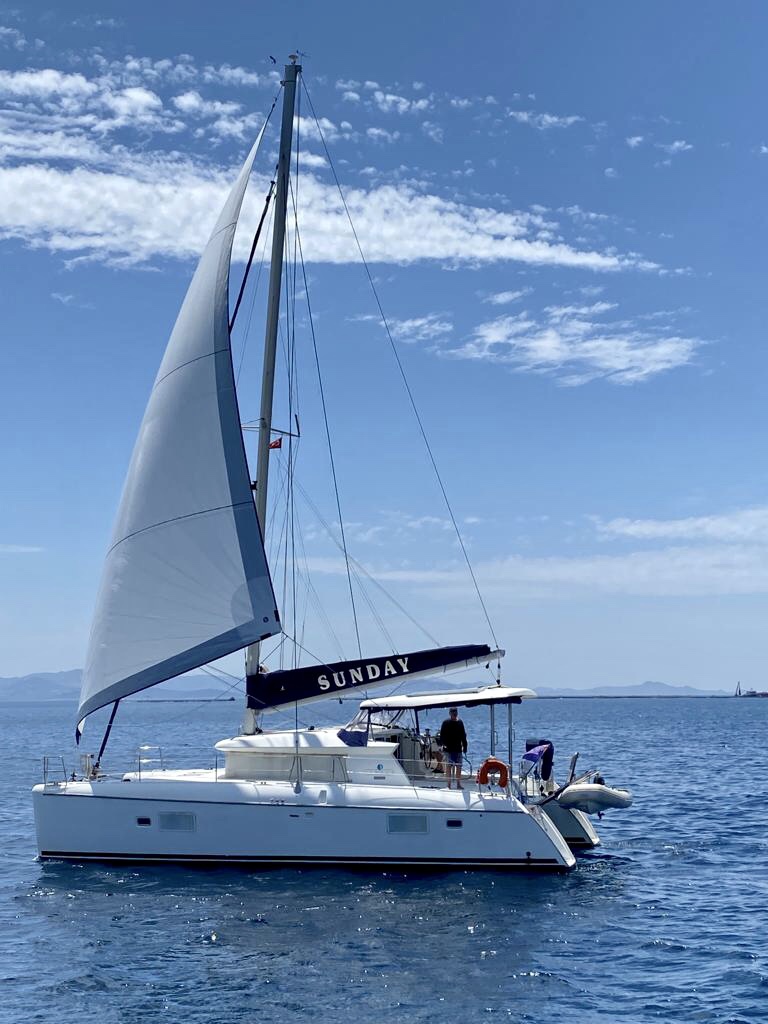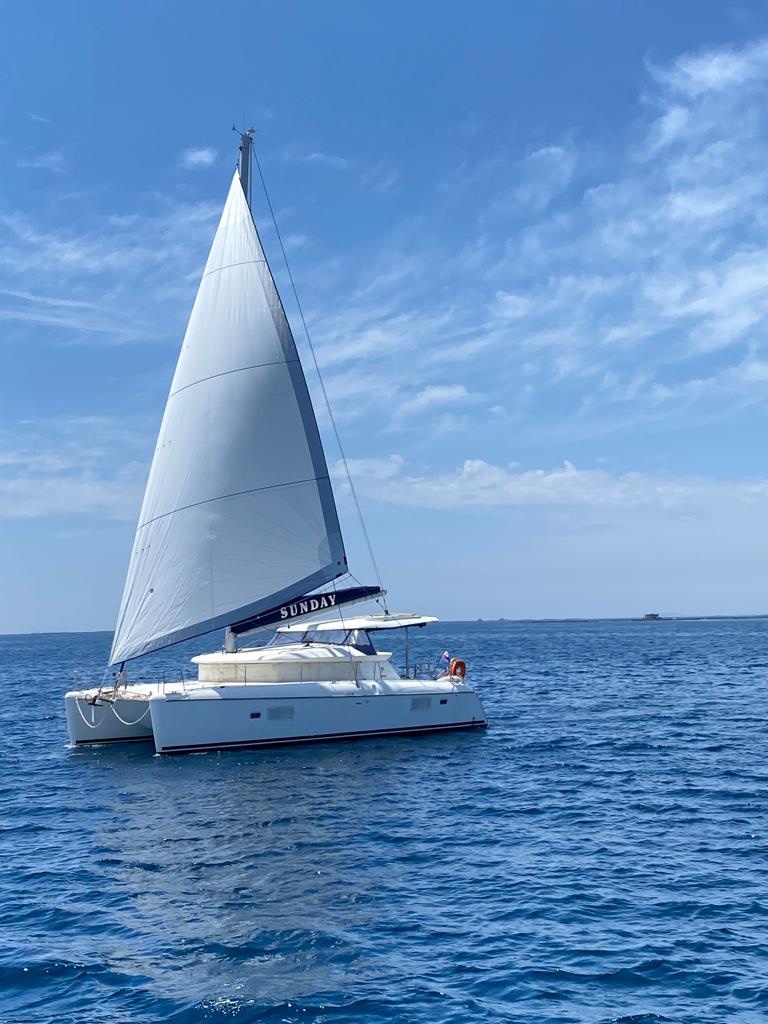 Aboard Sunday we were able to raise our new Code Zero (a large and very light foresail) and had a great ride most of the way there. Raylee took some great photos – thanks Raylee!