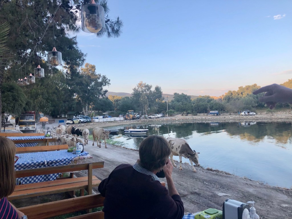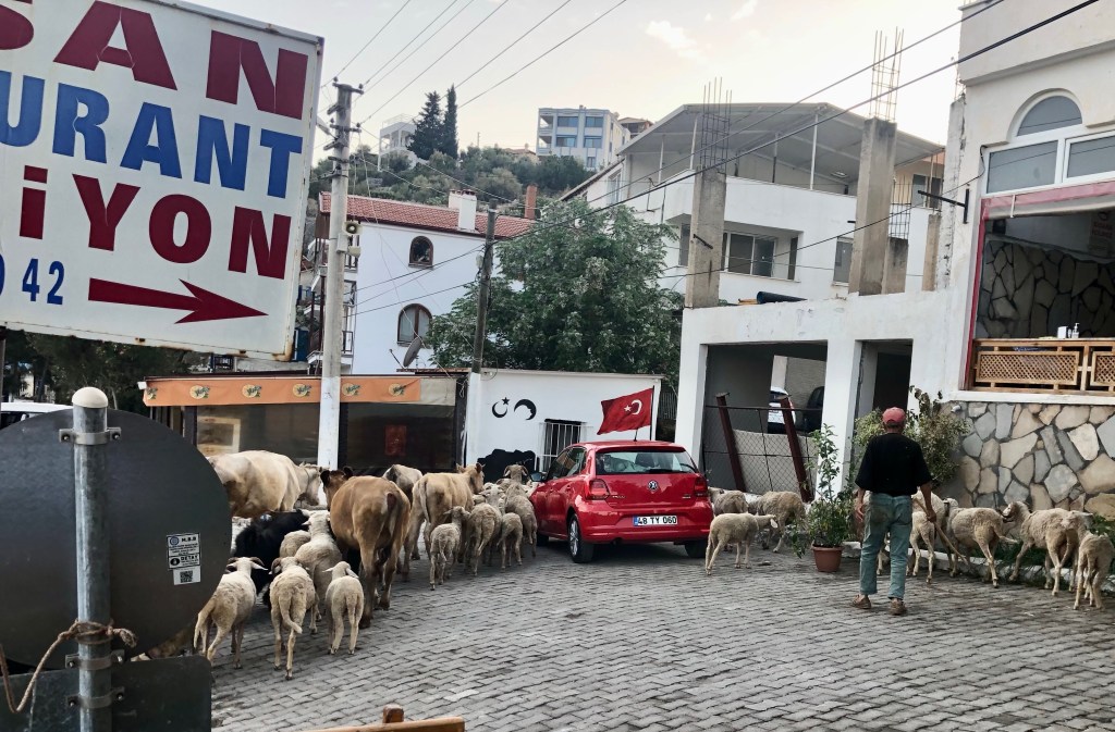 As we sat there soaking up the last golden rays of the setting sun, an elderly man drove his unruly gang of sheep, goats and cattle right past our table. Up close and personal with the locals – not something that happens every day!