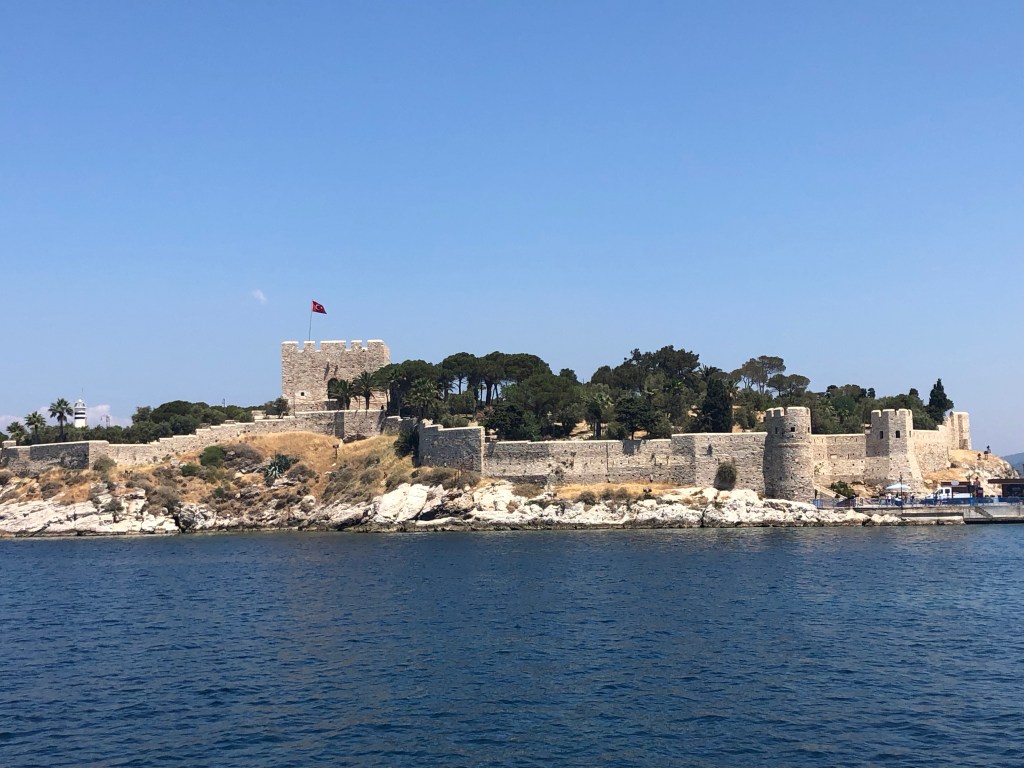 Rather than stopping anywhere near those monstrously sized vessels, we decided to anchor in the shadow of the picturesque Byzantine fortress.