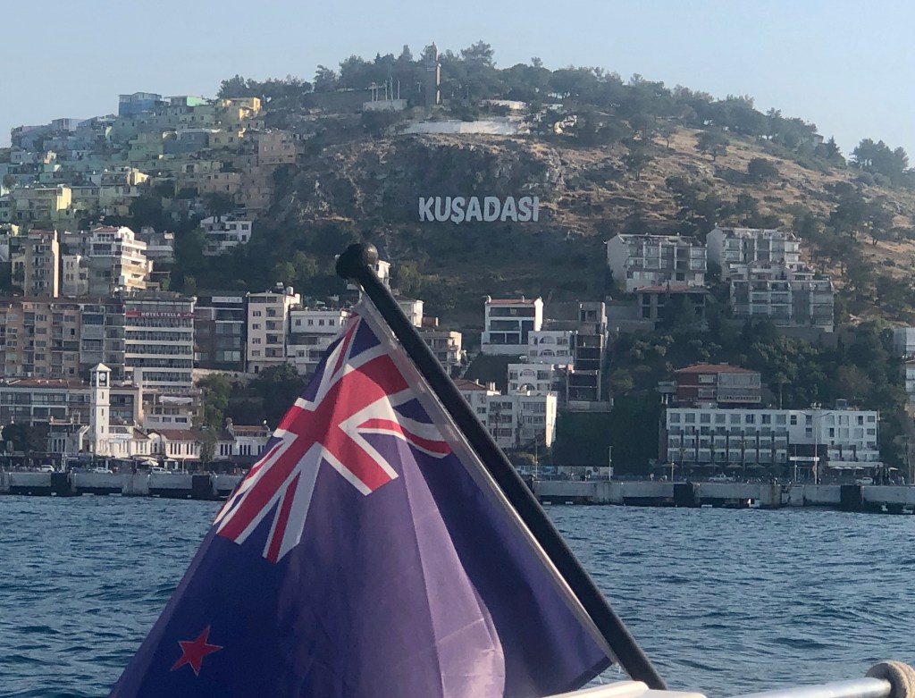 The following day we headed for the bustling tourist town of Kuşadası – on the way sailing very close to Greece as we transversed the narrow strait between the island of Samos on the Greek side and Cam Daği on the Turkish mainland. The strait is less than a mile across at the narrowest part. We had to pay close attention so as not to stray into Greek waters!