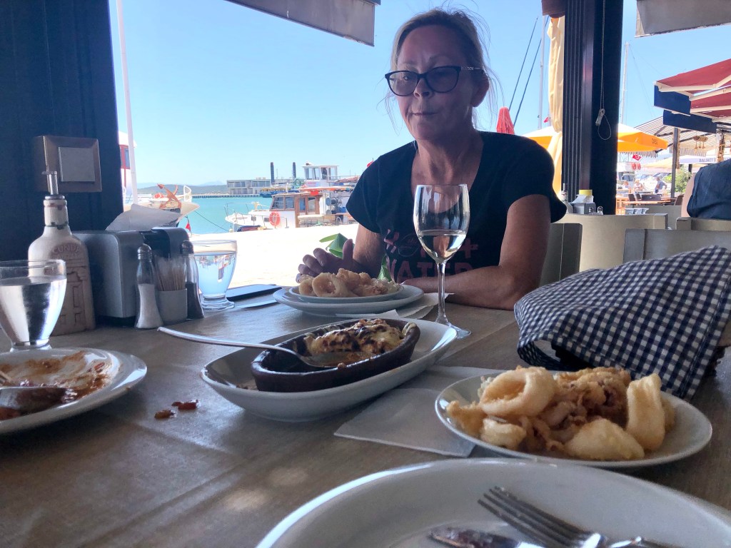 Sadly, the time had come for Jackie, our temporary crew member from Sydney Australia, to leave Sunday and embark on the next leg of her world trip. On her last day we took a taxi across the connecting road bridge to Alibey Adasi (also known as Cunda Island) where we had a wonderful lunch (thanks Jackie) in a waterfront restaurant.