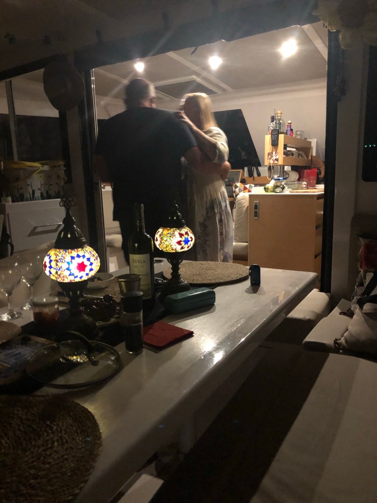 Fortunately Jackie’s flight from Izmir to Istanbul wasn’t too early so there was plenty of time to drink cups of tea before she stepped sedately into our dinghy for the last time this trip.