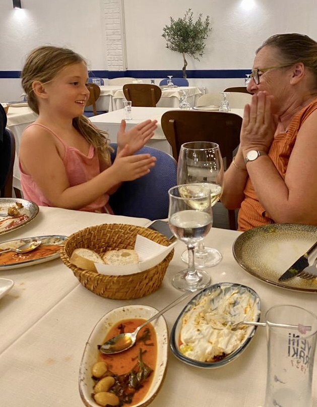 Sue and John’s youngest granddaughter and me playing games at the dinner table