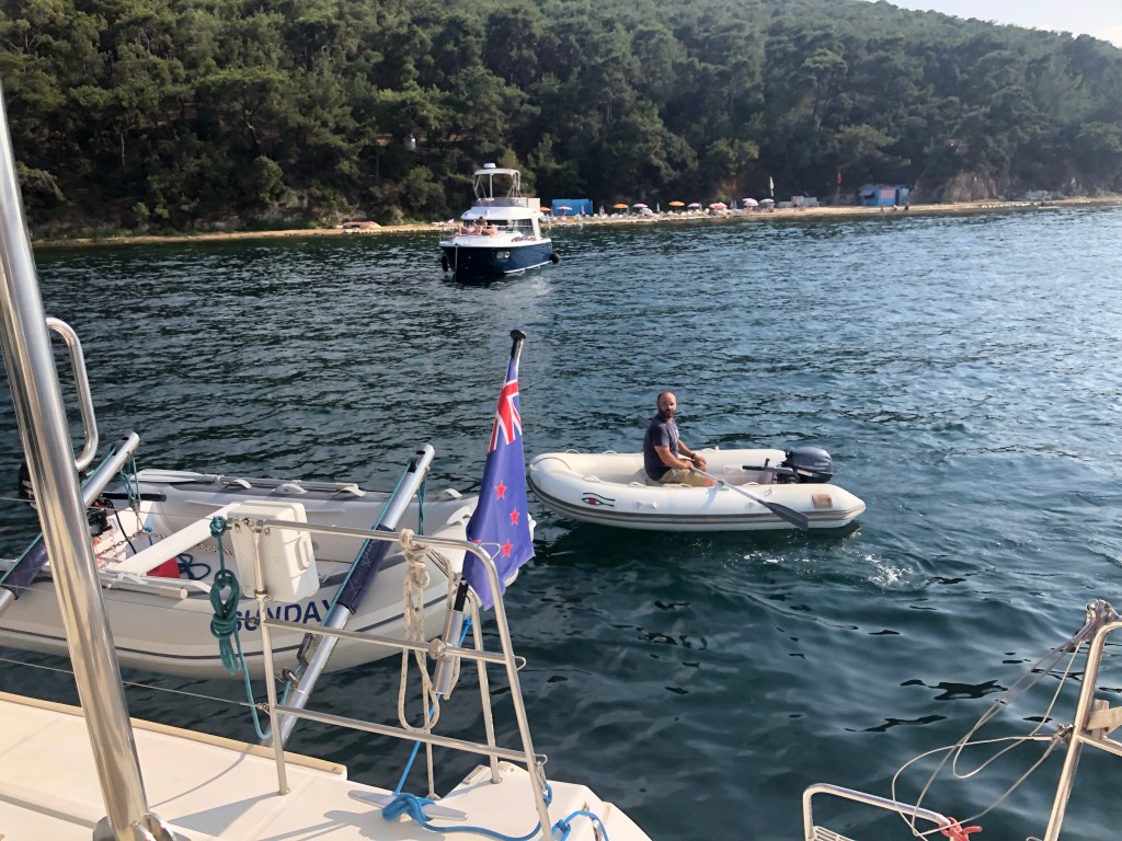 Later on that day we motored round to the lagoon on Heybeliada where we experienced the first of the surprises – Sue and John’s youngest son and his two crew suddenly arrived at our anchorage, having sailed Sea Pony overnight to arrive well before scheduled and at our lovely anchorage rather than the marina. What a reunion!