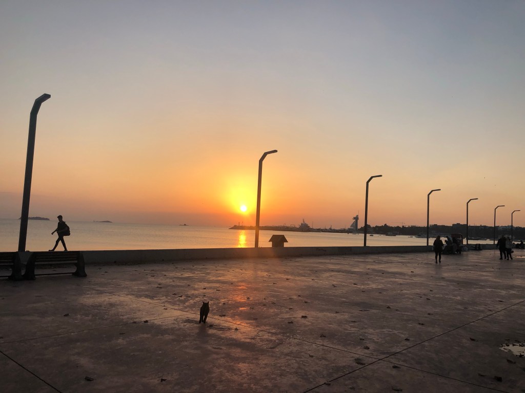 The next few days passed enjoyably with walks along the seafront, feeding the street cats, shopping in the Viaport shopping mall and going out for delicious medicinal cake!