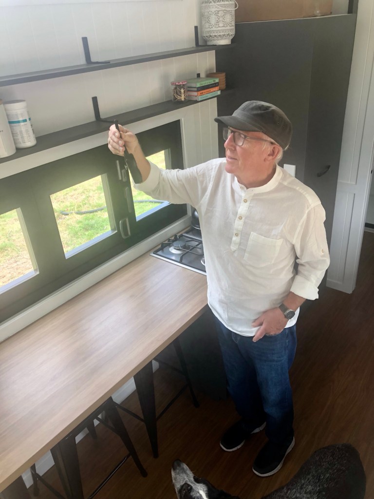 A new addition to the property since our last visit in February/March this year – before Ben and Sarah moved in – was a spectacular “tiny home” – a perfect little house on wheels with two sleeping areas, a tv lounge, fully equipped bathroom (including a washing machine) and a fabulous kitchen/dining area with a dishwasher, double sink, large fridge and loads of cupboard space. A perfect size for those of us who live on a boat!