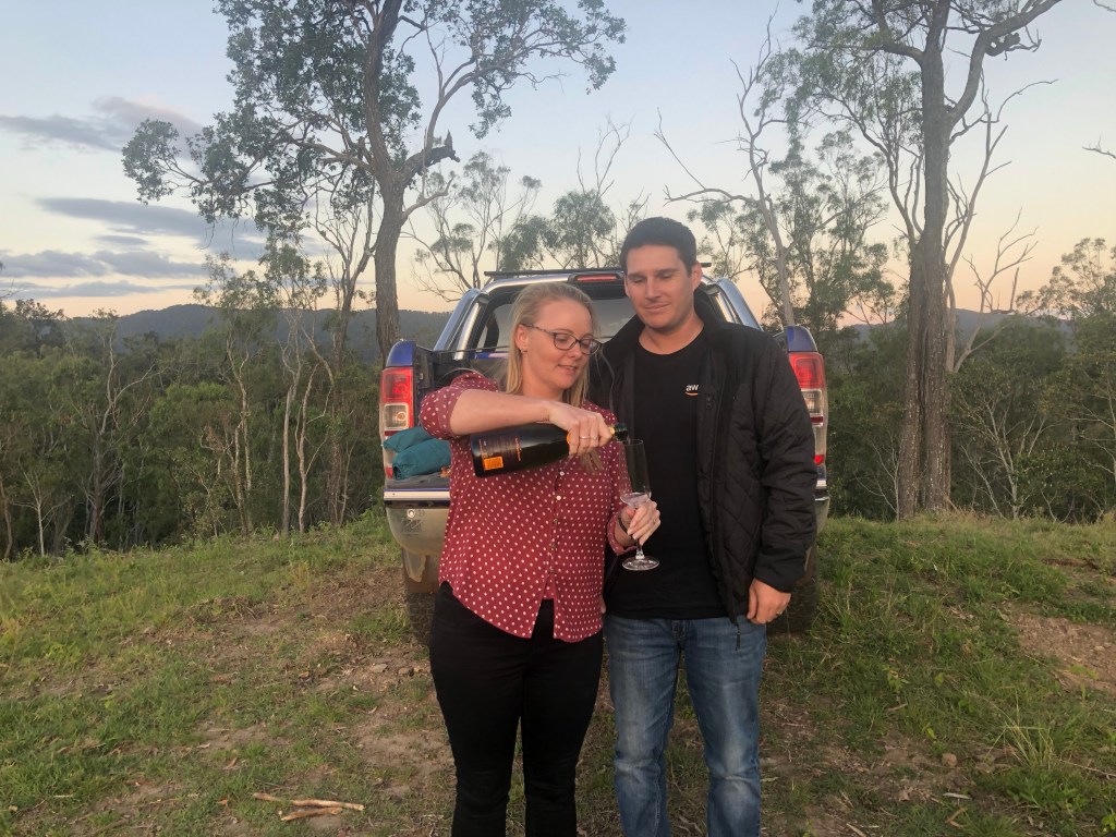 On our first evening after our arrival we drove up in Ben’s 4WD to the highest point on their property to watch the sun go down and drink champagne. The perfect way to celebrate- and what an amazing view!