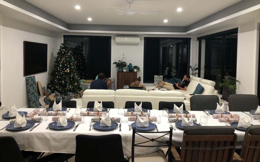 Our Christmas celebrations started in a a truly Australian way – drinks and snacks on the deck of an old “Queenslander” (an iconic architectural style of a timber house with wraparound balconies), surrounded by dogs and horses, listening to the sounds of the Australian bush on a warm steamy night.