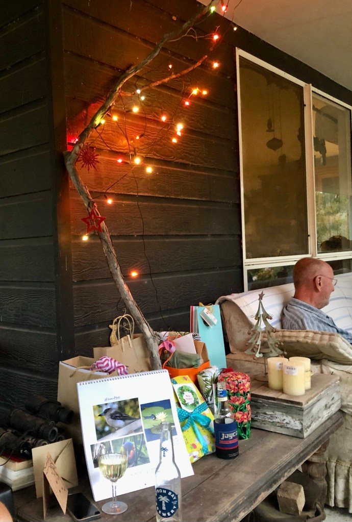 The Queenslander, which is the home of our son and daughter’s lovely neighbour Jan, had a typical Aussie bush Christmas tree – a bare stick from a gum tree – decorated with sparkling lights and with presents arranged around its base.