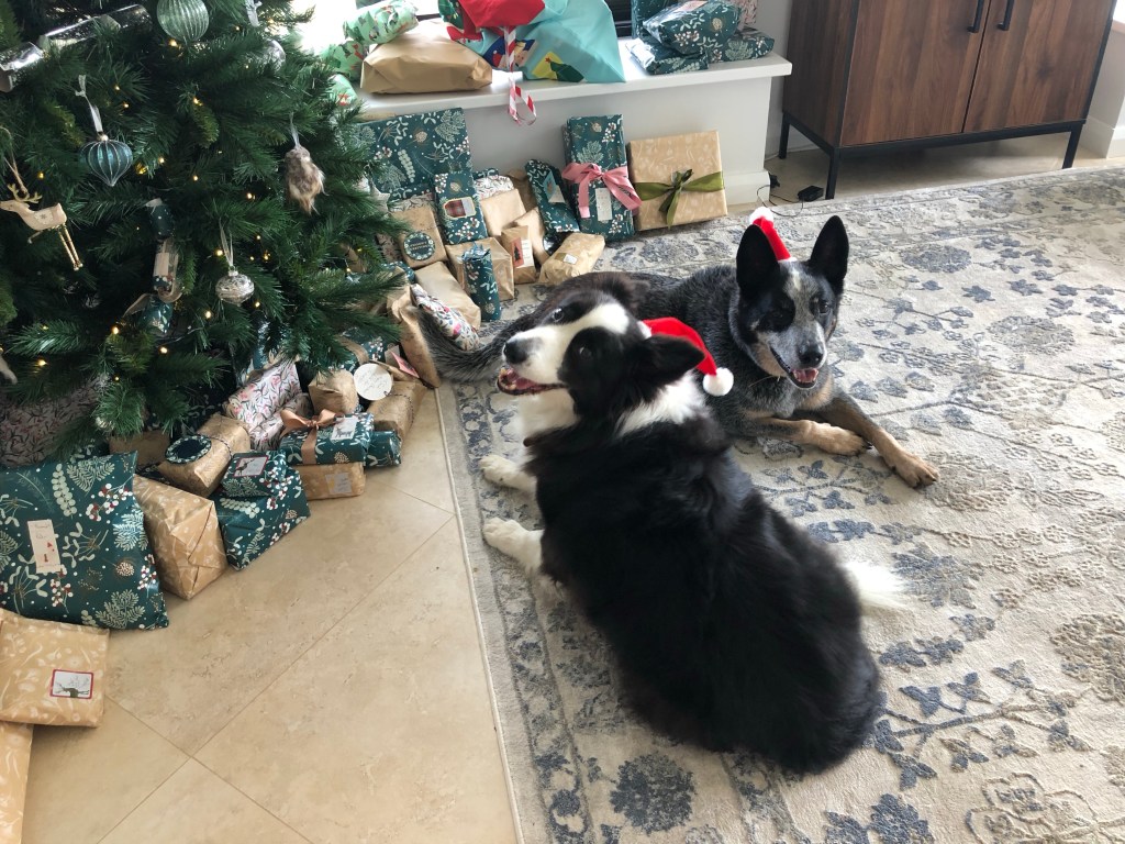 The grand dogs were very excited as they knew they would also be receiving gifts. When it was their turn they joyfully ripped off the paper to discover what new toy they were getting.