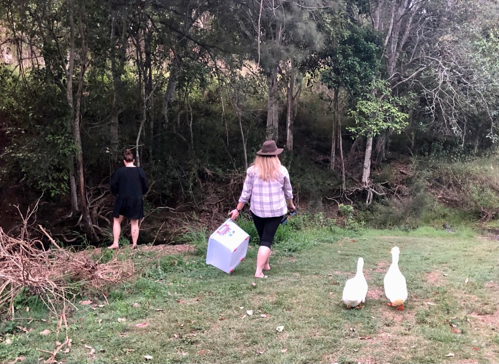 We’ve taken our grand duckies in the 4WD to swim in the creek and watched wild ducklings grow up, helped paint a fence at the front entrance to Ben and Sarah’s, lit big bonfires, and experienced a drenching tropical downpour!