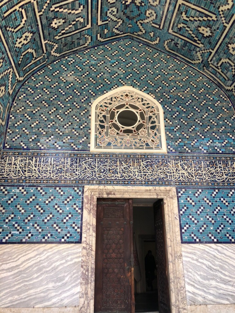 Commissioned in 1472, the façade contains glazed bricks with a definite Persian influence, and the main entrance is surrounded by a beautiful tiled green arch.