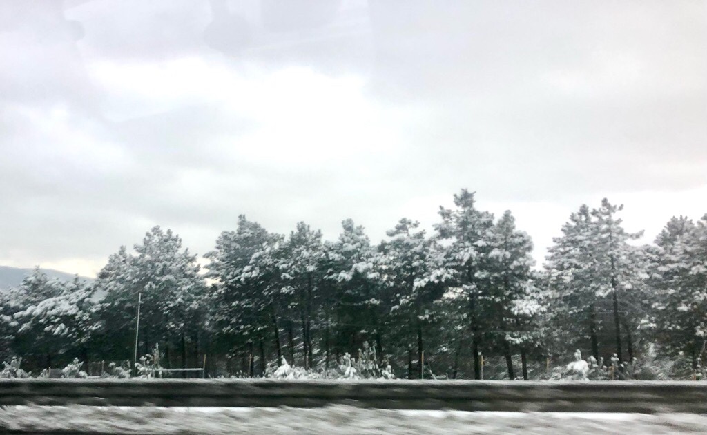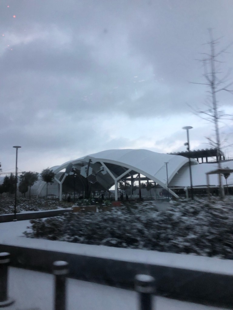 When we looked out of the window in the baggage collection hall the whole world was white. A recent blizzard had covered everything in a blanket of snow.