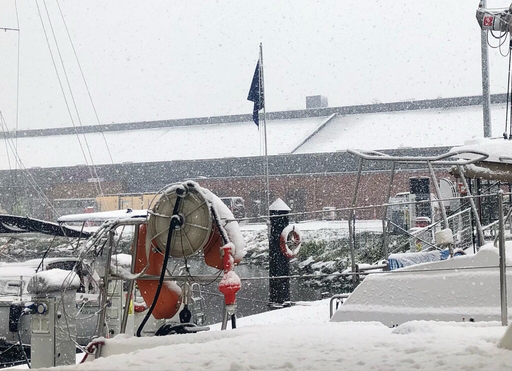 We arrived at Viaport Marina in Tuzla just as another snow storm hit and we had quite a job staying upright in the freezing slippery conditions wearing unsuitable footwear and trying to pull multiple suitcases!