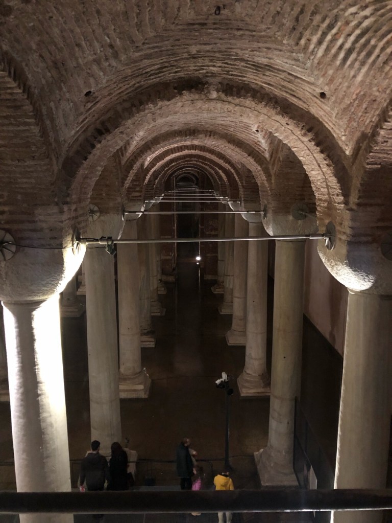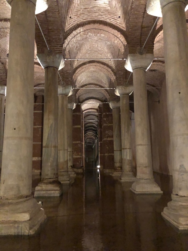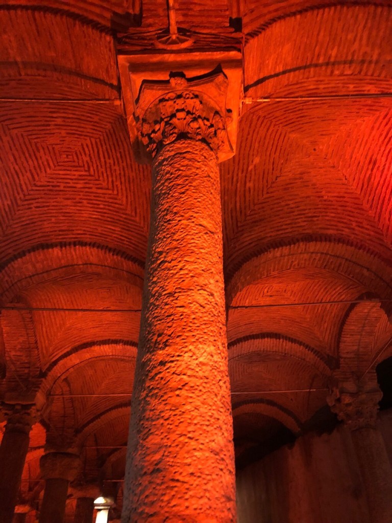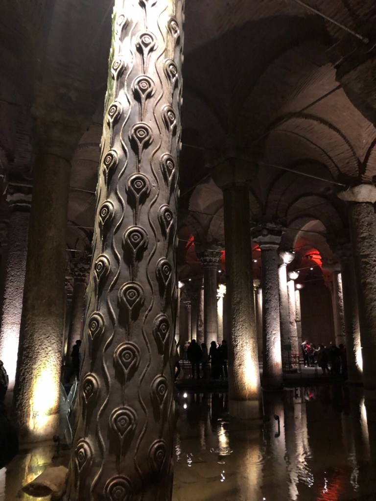 There was a walkway suspended just above the water, and as we walked deeper into the cistern we suddenly noticed that the 336 columns that hold up the vaulted ceilings, aren’t all the same. Some are made from marble and others from granite. Some have a smooth polished surface, others are rough like unpolished concrete.