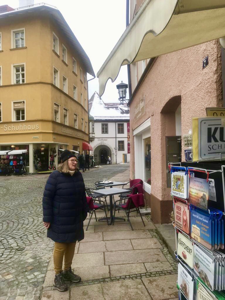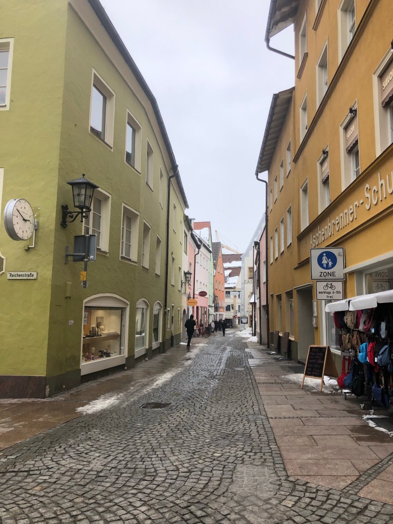 We had a great walk around the snowy medieval town centre with its cobbled streets, many pastel-coloured houses and shops selling everything from lederhosen to tourist paraphernalia.